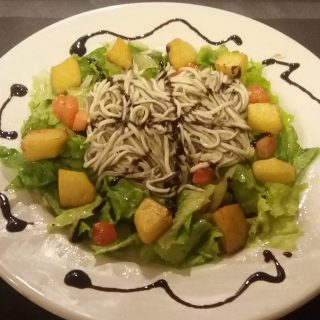 Ensalada templada de manzana Errezil Sagarra y foie